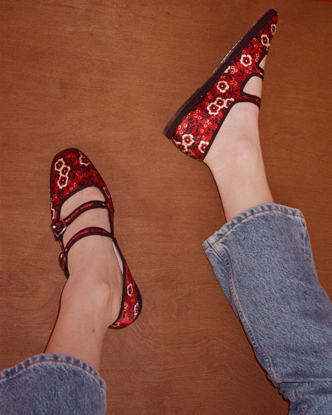 A Mary Jane crafted in the Dancing Daffodils printed silk charmeuse fabric from the Ciao Lucia ready-to-wear collection. This double-strap silhouette is one of Viani Milano’s most beloved styles, featuring adjustable straps with snap-on buckles and a softly squared toe. Wrapped in lustrous silk, it captures the perfect fusion of Ciao Lucia’s romantic aesthetic and Viani Milano’s timeless craftsmanship.
